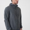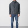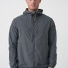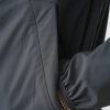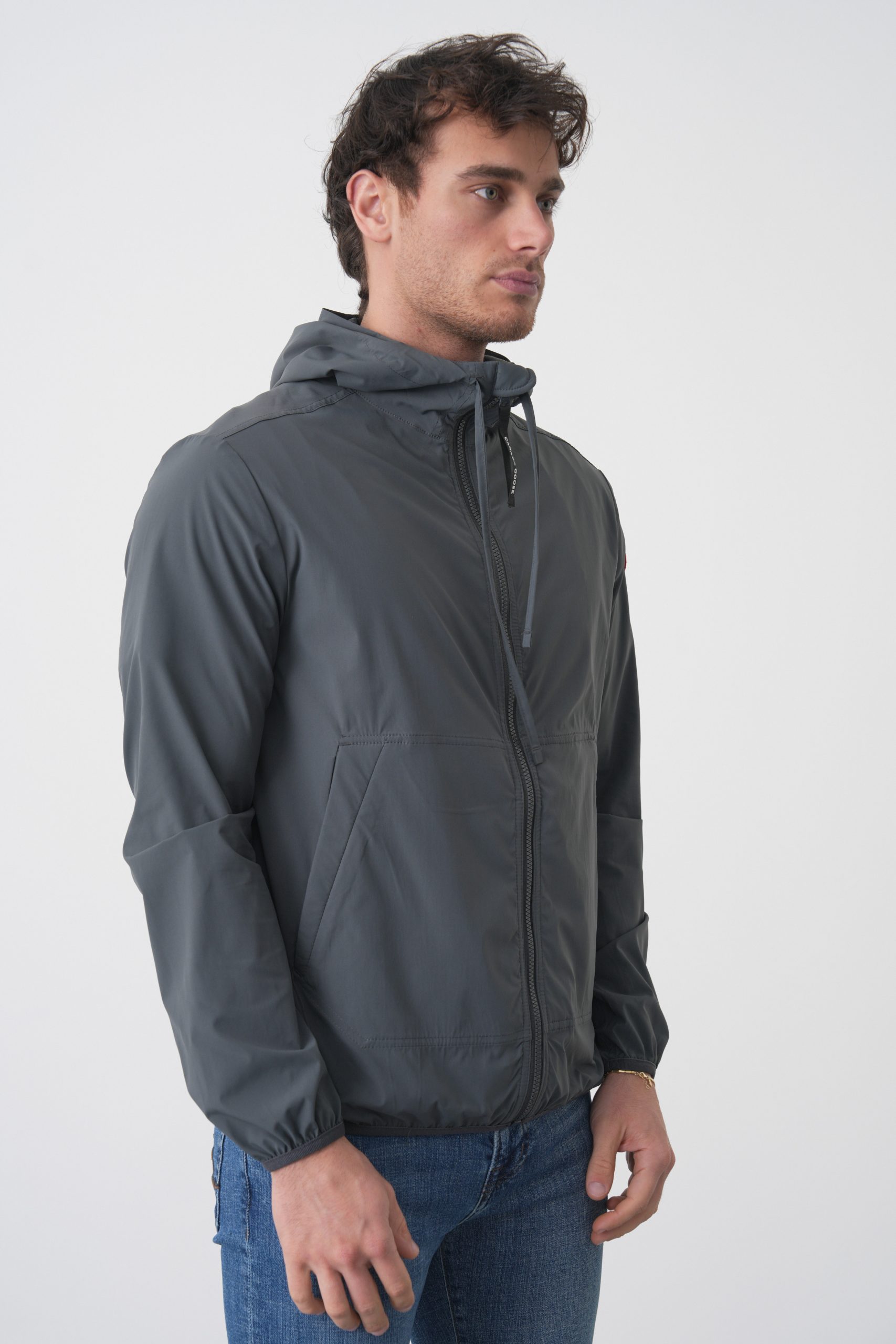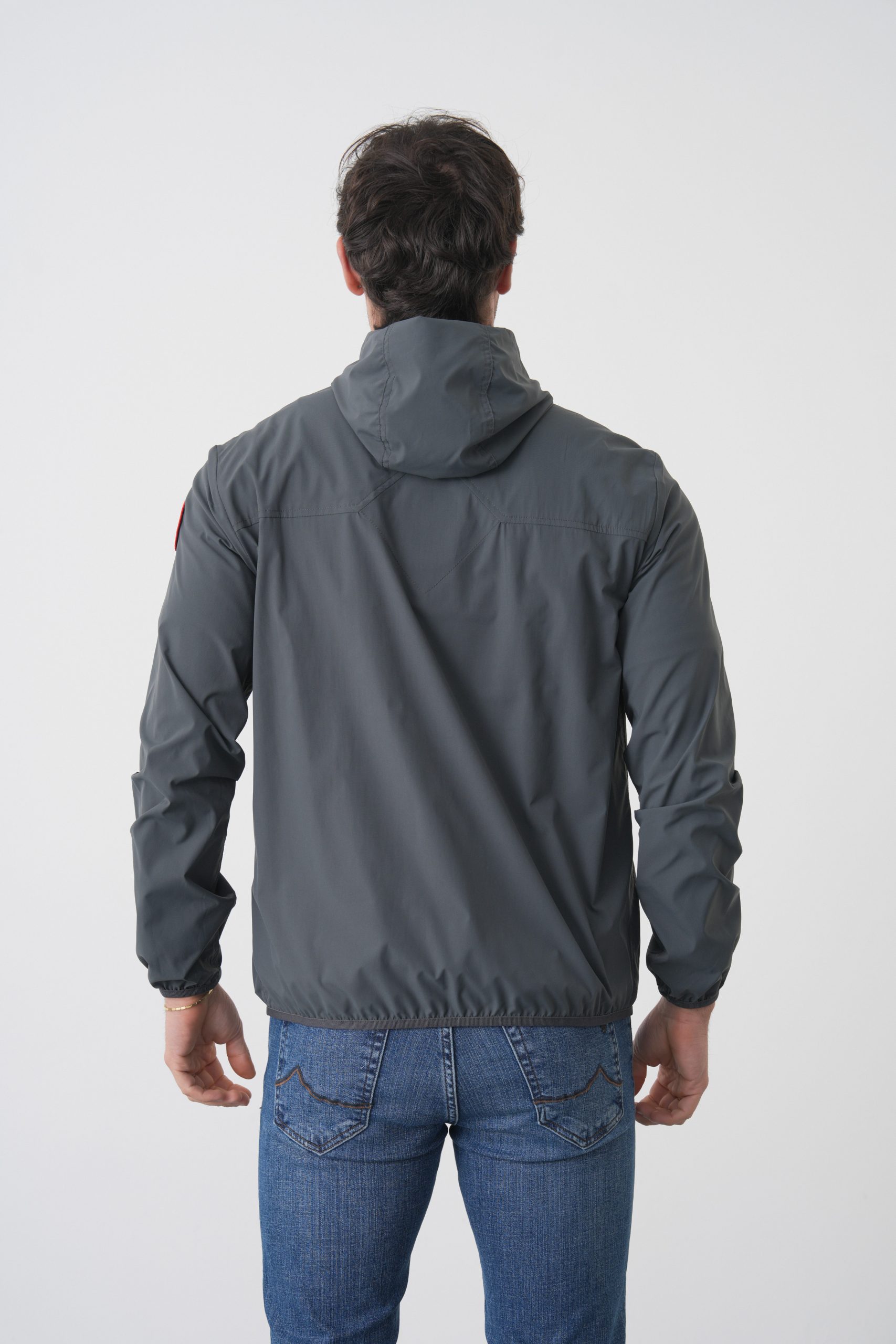 De jas kan opgeborgen worden in de linkerzak.